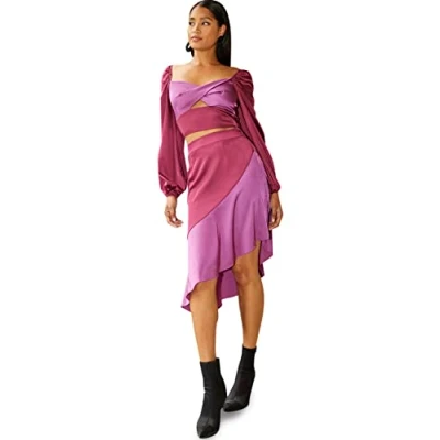 Chi London Womens Asymmetric Satin in Purple Skirt, Purple, 12 UK