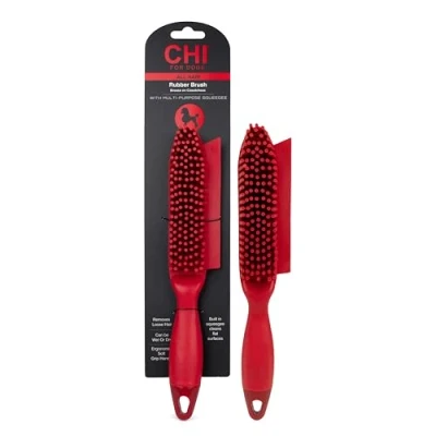 The CHI for Dogs Rubber Fur Accumulator Dog Brush attracts loose hair from your pet. By massaging your pet while it works, this brush is comfortable and effective. Keep your home clean with the rubber brush that lifts pet hair from fabric surfaces. The built in squeegee makes the brush easy to use and clean. Easy to use, this rubber dog brush has an ergonomic soft grip handle and can be used on wet or dry fur.