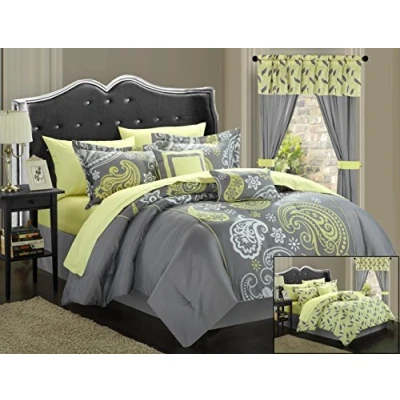 SUPER SOFT LUXURIOUS MICROFIBER – The Chic Home Olivia comforter is made with premium quality cotton-feel brushed microfiber – No more rustling and crinkling as you toss and turn to get comfortable. Just quiet peaceful sleep with an amazingly soft comforter cover. DOWN ALTERNATIVE FILLING – The Olivia queen size comforter is stuffed with 100% synthetic filling – Perfect for anyone with allergies looking to breathe and sleep easy, especially children and the elderly STAY WARM AND COOL UNDER ONE COVER – Be comfortable all year round with the Olivia queen comforter by Chic Home – Stuffed with lightweight synthetic down alternative filling the comforter will keep you warm in the winter and cool in the summer REVERSIBLE PRINTED DESIGN – Get 2 looks in one set with the Chic Home Olivia reversible comforter – A gorgeous grey and yellow paisley print design on one side and a contemporary floral print technique on the other – Give your bedroom décor a bold new look with this reversible bedding set and color-coordinated window treatments A BED IN A BAG BUILT TO LAST – The Chic Home Olivia Bed in a Bag set is made with strict quality control standards and comes with everything you need for a complete bedroom make over. With a reversible queen size comforter, sheet set, bedskirt, decorative pillows and shams, and window treatments this set is all you need to transform your décor and elevate your style. Add one to cart today and turn your bedroom into a Chic Home.