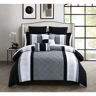 YOUR DAILY ESCAPE TO LUXURY - Crafted from 100% microfiber, Livingston queen size comforter set envelops you in a whisper-soft embrace softness and warmth. Imagine drifting off to sleep surrounded by the luxurious comfort. This exquisite bed set is your daily escape to relaxation and rejuvenation. COMPLETE BEDDING ENSEMBLE: Delight in the generous dimensions of the 90 x 90-inch queen comforter, designed to create a sumptuous look and feel. This set includes two matching pillow shams, three ornamental throw pillows adding layers of texture and comfort, and a coordinated sheet set and pillowcases set, culminating in a complete and captivating bedroom ensemble. STYLING TIPS FOR YOU: Achieve a magazine-worthy bed presentation by positioning the queen comforter just below the pillows to flaunt a 24-inch overhang at the bed's foot and a full 15-inch drape on the sides. Go one size up for an even more dramatic, luxurious overhang, or enhance your bed’s plushness by pairing the comforter with a richly filled mattress topper, further accentuating the bedroom's elegance and style. REST AND RECHARGE STARTS HERE - Chic Home comforters are more than just a bedding, it's an investment in your sleep and your well-being. Don't settle for another restless night. Order yours today and experience the difference. OEKO-TEX Standard 100 certified bedding sets are not only free from harmful chemicals, making it safe and suitable for all skin types, but also offers easy maintenance. Preferably dry cleaned, it's machine washable for hassle-free upkeep INDULGE IN UNMATCHED SOFTNESS - Our oversized queen comforter is made with premium quality microfiber cotton feel fabric that is luxuriously soft - it feels like cuddling up to a cloud. No more rustling and crinkling as you toss and turn to get comfortable. Just quiet peaceful sleep with an amazingly soft queen comforter set.