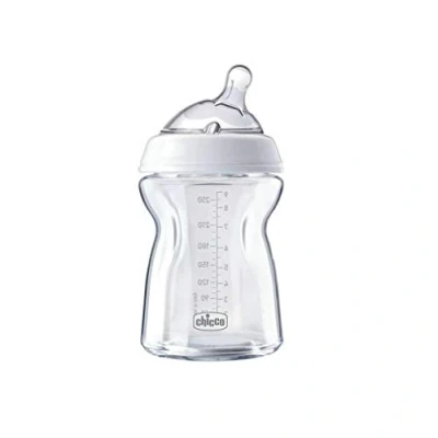 Chicco Natural Feeling Glass Baby Bottle Double anti-colic valve: it reduces the risk of inglestione air due to colic, and promotes peaceful lactation A specific teat for every age group: inclined for infants; rounded for the first months; elongated for larger