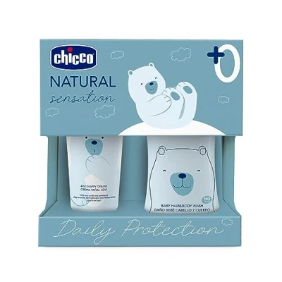 CHICCO Natural Sensation Set 2: 1 Shampoo & Body Bath No Tears 200 ml, Wrap Cream 4 in 100 ml