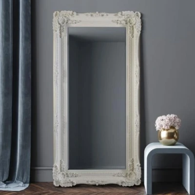 Chichi Mirrors Ivory French Elaborate Wall Mirror Full Length Dressing Mirror,White,6ft x 3ft