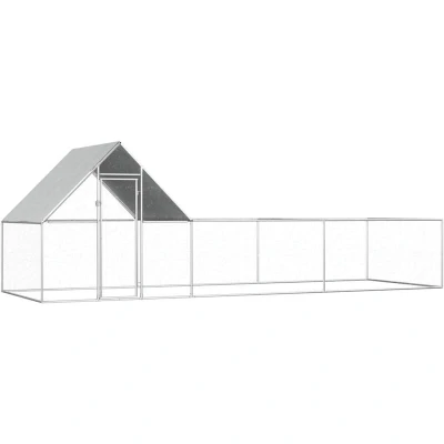 General description This practical and spacious chicken coop provides ample space for your poultry, ensuring their comfort. Made from durable galvanised steel, it features a water-resistant roof, making it an attractive addition to your garden. The coop includes an easy-to-open lockable door with latches for security, and the wire grid allows you to keep an eye on your animals. Technical specifications Colour: Silver Material: Galvanised steel Overall dimensions: 6 x 2 x 2 m (W x D x H) Mesh size: 41 x 25 mm Suitable for: chicken, hen, duck, goose, etc. Water-resistant roof: Yes Other information To prevent damage from heavy snow buildup, it is recommended to clear the roof regularly during winter.