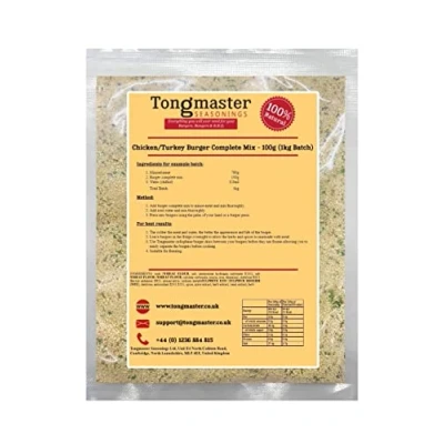 This burger seasoning will give added flavour to chicken that will tickle those taste buds. Use 100g mix per 1kg minced meat, includes rusk. This will make 1kg of burgers. Use with beef, chicken, pork, lamb or alternative! Simply add this seasoning to minced meat & water. Shape the burgers by hand or use a press for a professional look! The colder the meat and water, the better the appearance and life of the burger. Leave burgers in the fridge overnight to allow the herbs and spices to marinade with the meat Dont forget to use burger discs between your burgers before they are frozen allowing you to easily separate the burgers.