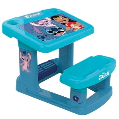 This plastic Stitch children's desk is specially designed for children from 2 years old, offering a safe and comfortable space where the little ones can play, paint and learn, perfectly adapting to the development and creativity needs of children in their early years. It also includes 5 sheets of Stitch to colour and 7 themed stickers, allowing the little ones to customize and decorate their desk to their liking. The desk features a spacious writing board that includes handy pen and eraser slots to keep all school supplies organized, such as crayons, crayons and markers, preventing them from being lost and encouraging order from a young age. Its modern and functional design easily integrates into the current decoration of children's rooms, becoming an ideal element for both study and play, and ensuring that children have an attractive and stimulating environment to develop their imagination and skills. Made of plastic of optimum strength and durability, this desk guarantees a long service life even with daily use and the energy of children; its approximate dimensions of 57 x 72 x 49 cm make it suitable for children's spaces without taking up too much. The assembly of the desk is simple and fast, allowing parents to set it up without hassle; plus, its comfortable bench and large work surface ensure hours and hours of fun, entertainment and learning, making it an excellent choice for any child's or girl's room.