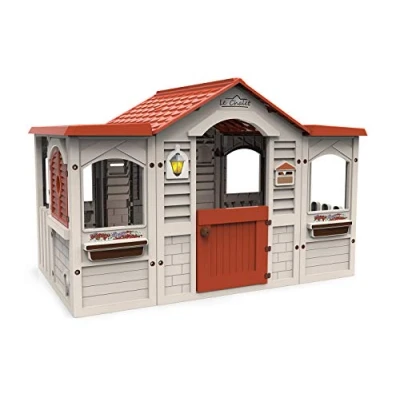 Large children's house for outdoor and indoor play Made of strong and durable plastic Beige with red roof Suitable for children's playtime adventures