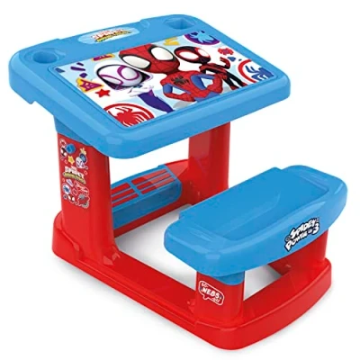 This fun desk from Spidey is ideal for the little ones in the house to draw and paint The desk has a large work surface (45x27 cm), and a comfortable bench, ensuring hours of fun, imagination and entertainment Don't lose anything; thanks to the compartments of the desk, your little one can keep all their crayons and crayons tidy The desk includes 5 hilarious sheets with illustrations of Spidey and Friends to color; made with high strength and durable plastic Desks are optimal in early childhood; drawing, painting and writing stimulates the creativity, concentration, attention and expression capacity of little ones; recommended from 24 months