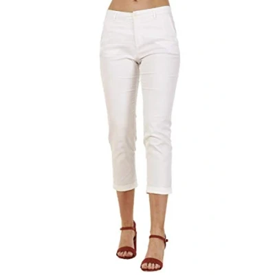 ChicWhisper Ladies Cotton Cropped Turn Up Trousers White