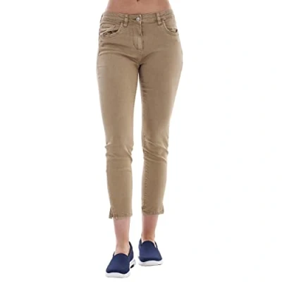ChicWhisper Ladies Cropped 7/8 Length Slim Fit Pants Capri Crop Jeans Khaki