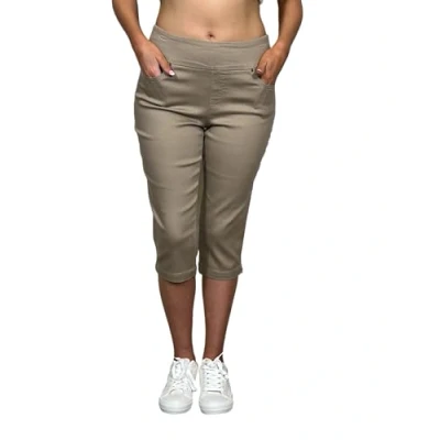 ChicWhisper Ladies Pull On Stretch Elasticted Waist Crops Pockets Pants Jeggings Trousers Beige