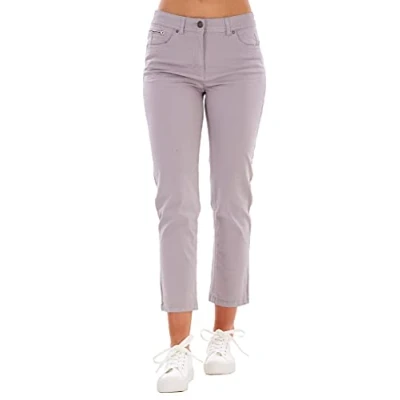 ChicWhisper Ladies Slim Fit Cropped Stretch Mid Rise Trousers Grey