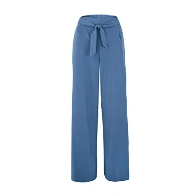 ChicWhisper Ladies Wide Leg Belted Plus Size Work Casual Trousers Blue