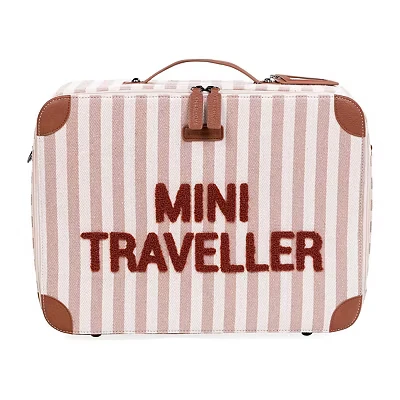 CHILDHOME, Child Suitcase, Week end, Cabin Size, Hand Luggage, Compact, Solid, Handle for Easy Transport, Name tag, Design, Faux Leather, Mixed, Mini Traveller, Terracotta Stripes