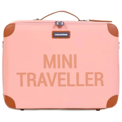 Childhome, Children's Weekend Cabin Size Compact Heavy Duty Transport Handle Name Tag Design Faux Leather Mini Traveller Pink/Copper, 1
