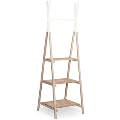 Hammock: this design wardrobe in the shape of a teepee fits in the children's room. In addition, it is simple and decorative and has many functions and takes up little space in the room. The stand has 3 shelves and a hanging bracket on the top so you can hang your child's clothes comfortably. High quality material: made of beech wood, the wardrobe is sturdy Dimensions: 197 x 60 x 60 cm. Ideal for hanging children's items. Practical: the wardrobe has 3 shelves and a stand on the top so you can easily hang your child's clothes.