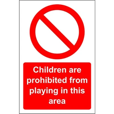 Children are prohibited from playing in this area area Safety sign 3mm Aluminium sign 400mm x 300mm Digitally printed and laminated for extra durability 10mm Radius rounded corners, no sharp edges, Manufacturer: KPCM Display ltd