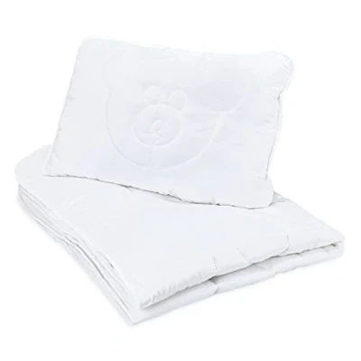 đ ăFOR A RESTFUL SLEEPă â Children's duvet with polyester hollow fiber filling provides cozy comfort and well-being during sleep, available in a set with a pillow. Depending on your choice, you will receive in the set: children's duvet and pillow with or without 2 pieces of bedding. đ§șăEASY CARE & HYGIENICă â The set is washable at 60 °C and dries quickly, ensuring easy cleaning and long-term hygiene â Baby duvet is perfect for daily use. A durable, sustainable choice for conscious parents and an ideal gift idea for newborns and toddlers. đżăSKIN-FRIENDLY & OEKO TEX CERTIFIEDă â The comforter and the pillow are made from soft and light material that is gentle on your child's sensitive skin. The comforter and pillow set is free from chemical odors. Highest safety is guaranteed by the Oeko Tex certificate. đăHIGH-QUALITY CRAFTSMANSHIPă - Children's duvet manufactured in the EU according to the highest quality standards. The duvet is available in two versions: smooth or with a subtle, bear-shaped quilted pattern. The filling remains dimensionally stable even after frequent washing and prevents clumping. đĄïžăYEAR-ROUND COMFORTă â The light and breathable filling of the baby duvet and pillow ensures a balanced sleeping environment. Warming in winter without overheating, and pleasantly light in summer â for restful sleep in every season. đïžăIDEAL FOR CHILDREN'S BEDSă â Our children's bed duvet with matching pillow is available in sizes perfectly suited for standard children's beds. The children's blanket offers optimal sleep comfort for babies and toddlers.