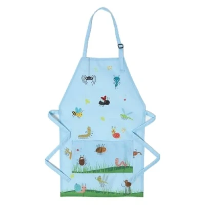 FUN & VIBRANT DESIGN: Stylish kids apron for gardening. Featuring playful insect prints. Made from polyester & polypropylene. Set includes: 1 vibrant blue apron for kids. Measures: H56.5 x W34.5 cm. DURABLE PROTECTION: Made from durable polyester and polypropylene, this childrens apron protects against dirt, water, and spills, ensuring kids stay mess-free while gardening. Cold washable and designed for long-lasting use. Cool iron if needed. ADJUSTABLE FIT: Featuring an adjustable neck strap, this childs apron provides a comfortable and secure fit, allowing for easy movement during outdoor activities. FUNCTIONAL & VERSATILE: Front pockets offer a handy place to store small gardening tools, seeds, or gloves, making gardening more organized and engaging. Also suitable to use as kids aprons for cooking or arts & crafts. A BRITISH COMPANY: With over 24 years of expertise in the UK and Europe, Homescapes is a leading manufacturer of home decor, including garden accessories and ornaments. Explore our exclusive collection of garden decorations, designed to add charm and character to any outdoor space.