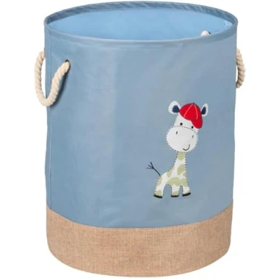 Children's Toy Basket with Giraffe Decoration Laundry for Bedroom Rope Handles, Polyester, 40 x 50 cm, Blue