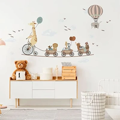 Package contents: the board measures H90 x L60 cm. The hot air balloon sticker and the flying elephant measure H45 x L35 cm. The giraffe sticker and his bicycle measure H60 x L35 cm. The largest cloud sticker measures H25 x L15 cm ✅ Easy to apply: the large thickness of the children's sticker makes it easy to apply. Allows precise installation of the sticker without the formation of air bubbles. The application is simple, simply remove from the paper and lay on a smooth, clean surface. Peel the sticker from the backing and apply it from left to right. Repositioning is possible for the first months. The sticker then stays permanently on your surface, without damaging it when removed. ✅ Decorative element and easy to apply: this children's wall sticker is perfect for your child's room. This children's bedroom wall sticker adds a touch of design to your decoration. Simple and easy to install. ✅ PERFECT GIFT: give these wall stickers as a gift for special occasions: birthdays, baby showers, Christmas, engagements, etc. ✅ DURABLE AND DURABLE: lasts over 5 years. High-quality photo prints, non-flammable, odourless, resistant to high temperatures (-40 to 85 °C), scratch and water, no use of harsh or abrasive products. Clean with fresh water., Manufacturer: Ambiance