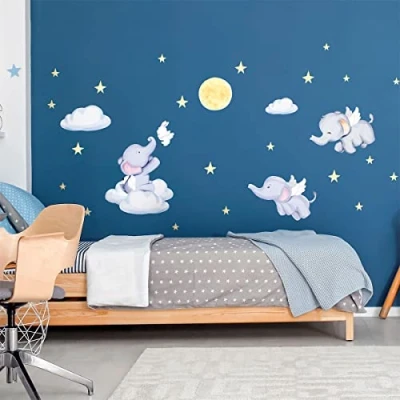 Children's Wall Stickers Baby Room Decoration Bedroom Sticker Elephant in The Starry Sky H60 x L90 cm