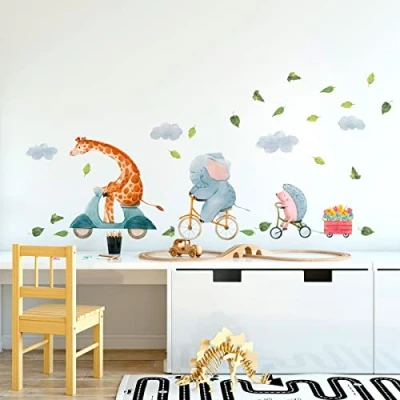 ✅ Package contents: the board measures H90 x L60 cm. The elephant sticker and his bicycle measure H40 x L50 cm. The giraffe sticker and his scooter measure H50 x L55 cm. The hedgehog sticker and his bicycle are H25 x L30 cm ✅ Easy to apply: the large thickness of the children's sticker makes it easy to apply. Allows precise installation of the sticker without the formation of air bubbles. The application is simple, simply remove from the paper and lay on a smooth, clean surface. Peel the sticker from the backing and apply it from left to right. Repositioning is possible for the first months. The sticker then stays permanently on your surface, without damaging it when removed. ✅ Decorative element and easy to apply: this children's wall sticker is perfect for your child's room. This children's bedroom wall sticker adds a touch of design to your decoration. Simple and easy to install. ✅ PERFECT GIFT: give these wall stickers as a gift for special occasions: birthdays, baby showers, Christmas, engagements, etc. ✅ DURABLE AND DURABLE: lasts over 5 years. High-quality photo prints, non-flammable, odourless, resistant to high temperatures (-40 to 85 °C), scratch and water, no use of harsh or abrasive products. Clean with fresh water., Manufacturer: Ambiance