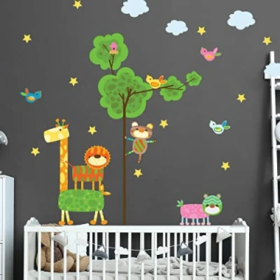 Package contents: The board measures H60 x L90 cm. The tree sticker measures H110 x L65 cm. The giraffe sticker measures H60 x L40 cm. The lion sticker measures H25 x L30 cm. Easy to apply: The large thickness of the children's sticker makes it easy to apply. Allows precise installation of the sticker without the formation of air bubbles. Application is simple, simply peel off from the paper and lay on a smooth, clean surface. Peel off the sticker from the backing and apply from left to right. Repositioning is possible during the first few months. The sticker then holds permanently on your substrate, without damaging it when peeling off. Decorative element and easy to use: This children's animal wall sticker is perfect for your child's room. This wall sticker for children's room with animals adds a touch of design to your decoration. Simple and easy to install. Perfect gift: Give these wall stickers as a gift for special occasions: birthday parties, baby showers, Christmas, engagements, etc. ✅ DURABLE AND RESISTANT: Lasts more than 5 years. High quality photo prints, non-flammable, odourless, high temperature resistant (-40 to 85 °C), scratch and water resistant, no use of aggressive or abrasive products. Clean with fresh water., Manufacturer: Ambiance