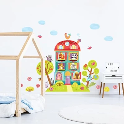 ✅ Package contents: the sheet measures H60 x L90 cm. The house sticker measures H75 x L55 cm. A tree sticker measures H35 x L20 cm. The largest cloud sticker measures H8.5 x L15 cm. ✅ Easy to apply: the large thickness of the children's sticker makes it easy to apply. Allows precise installation of the sticker without the formation of air bubbles. The application is simple, simply remove from the paper and lay on a smooth, clean surface. Peel the sticker from the backing and apply it from left to right. Repositioning is possible for the first months. The sticker then stays permanently on your surface, without damaging it when removed. ✅ Decorative element and simple application: this children's animal wall sticker is perfect for your child's room. This children's bedroom wall sticker adds a touch of design to your decoration. Simple and easy to install. ✅ PERFECT GIFT: give these wall stickers as a gift for special occasions: birthdays, baby showers, Christmas, engagements, etc. ✅ DURABLE AND DURABLE: lasts over 5 years. High-quality photo prints, non-flammable, odourless, resistant to high temperatures (-40 to 85 °C), scratch and water, no use of harsh or abrasive products. Clean with fresh water., Manufacturer: Ambiance