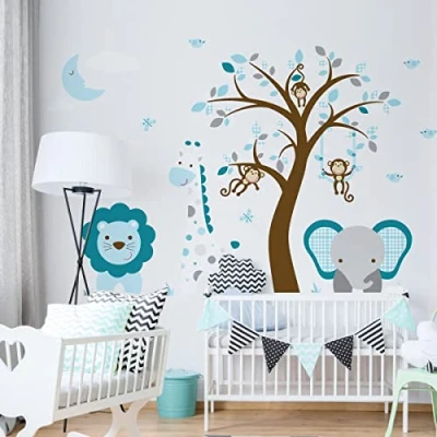 Package contents: H60 x L80 cm. The height of the tree is 70 cm. The lion sticker measures 27 x 21 cm. The giraffe sticker measures 45 x 20 cm ✅ Easy to apply: the large thickness of the children's sticker makes it easy to apply. Allows precise installation of the sticker without the formation of air bubbles. The application is simple, simply remove from the paper and lay on a smooth, clean surface. Peel the sticker from the backing and apply it from left to right. Repositioning is possible for the first months. The sticker then stays permanently on your surface, without damaging it when removed. ✅ Decorative element and easy to apply: this children's wall sticker is perfect for your child's room. This children's bedroom wall sticker adds a touch of design to your decoration. Simple and easy to install. ✅ PERFECT GIFT: give these wall stickers as a gift for special occasions: birthdays, baby showers, Christmas, engagements, etc. ✅ DURABLE AND DURABLE: lasts over 5 years. High-quality photo prints, non-flammable, odourless, resistant to high temperatures (-40 to 85 °C), scratch and water, no use of harsh or abrasive products. Clean with fresh water., Manufacturer: Ambiance