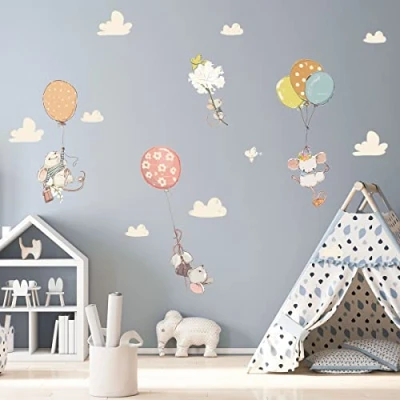 Children's Wall Stickers Baby Room Decoration Bedroom Sticker Mouse and Flying Balloons H60 x L90 cm