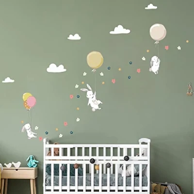 ✅ Package contents: the board measures H60 x L90 cm. The rabbit sticker with the yellow balloon measures H80 x L30 cm. The rabbit sticker with three balloons is H65 x L20 cm. The rabbit sticker with the beige balloon is H70 x L25 cm. ✅ Easy to apply: the large thickness of the children's sticker makes it easy to apply. Allows precise installation of the sticker without the formation of air bubbles. The application is simple, simply remove from the paper and lay on a smooth, clean surface. Peel the sticker from the backing and apply it from left to right. Repositioning is possible for the first months. The sticker then stays permanently on your surface, without damaging it when removed. ✅ Decorative element and simple application: this children's animal wall sticker is perfect for your child's room. This children's bedroom wall sticker adds a touch of design to your decoration. Simple and easy to install. ✅ PERFECT GIFT: give these wall stickers as a gift for special occasions: birthdays, baby showers, Christmas, engagements, etc. ✅ DURABLE AND DURABLE: lasts over 5 years. High-quality photo prints, non-flammable, odourless, resistant to high temperatures (-40 to 85 °C), scratch and water, no use of harsh or abrasive products. Clean with fresh water., Manufacturer: Ambiance