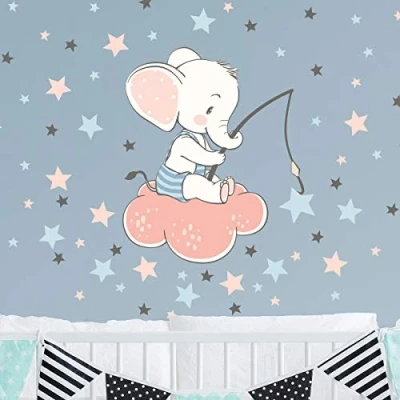 ✅ PACKAGE CONTENTS: This wall sticker is made up of separate elements, a sheet of 35 x 30 cm. The elephant on its cloud is fishing, measures 35 x 30 cm. The board has 100 stars. Stars measure between 4cm and 1.5cm. These stickers are perfect for children's room decoration ✅ Quality wall sticker: This sticker is made of high quality PVC. This wall sticker has no smell. Waterproof and moisture resistant. Wipe clean with a damp cloth. ✅ Perfect gift: Give these wall stickers as a gift for special occasions: birthdays, baby showers, Christmas, engagements, etc. ✅ Easy to apply: The high thickness of the children's wall sticker makes it easy to apply. Allows precise installation of the decorative wall sticker without forming air bubbles. Application is simple, simply peel off from the paper and apply to a clean smooth surface. Peel off the wall sticker from the backing and apply from left to right. These children's room wall stickers will then stick permanently to your wall. ✅ Original decoration: Create an original look thanks to the children's wall stickers for your wall decoration. This decorative sticker will definitely enhance the walls of your home. These wall stickers are a perfect original gift idea, Manufacturer: Ambiance-Live