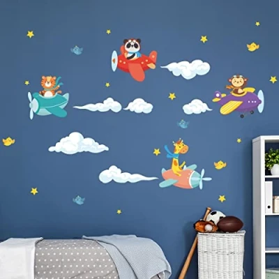 ✅ Available in 2 sizes: 🔹 S - 60 x 90 cm board, the plane sticker with the panda measures H30 x L30 cm, the bird sticker measures H6 x L8 cm, the largest star sticker measures H5 x L5 cm; 🔹M - 120 x 180 cm, the airplane sticker with panda Measures H60 x L60 cm, the bird sticker measures H12 x L16.5 cm, the largest star sticker measures H10 x L10 cm ✅ Package contents: you will receive 1 sheet which consists of the children's animal sticker + an instruction manual to help you stick the sticker. ✅ Decorative element and simple application: this children's animal wall sticker is perfect for your child's room. This children's bedroom wall sticker adds a touch of design to your decoration. Simple and easy to install. Simply peel the sticker from its backing and stick it to any smooth surface. Can be removed without leaving any residue. ✅ PERFECT GIFT: give these wall stickers as a gift for special occasions: birthdays, baby showers, Christmas, engagements, etc. Quality sticker for children's walls: this sticker is made of high-quality PVC. This children's wall sticker has no smell. Waterproof and moisture-proof. Wipe clean with a damp cloth., Manufacturer: Ambiance Sticker