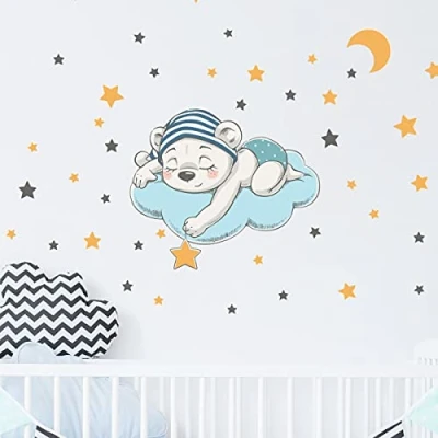 Package contents: the bear on the cloud measures 30 x 35 cm and the stars measure between 4 and 1.5 cm. ✅ Easy to apply: the large thickness of the children's sticker makes it easy to apply. Allows precise installation of the sticker without the formation of air bubbles. The application is simple, simply remove from the paper and lay on a smooth, clean surface. Peel the sticker from the backing and apply it from left to right. Repositioning is possible for the first months. The sticker then stays permanently on your surface, without damaging it when removed. ✅ Decorative element and easy to apply: this children's wall sticker is perfect for your child's room. This children's bedroom wall sticker adds a touch of design to your decoration. Simple and easy to install. ✅ PERFECT GIFT: give these wall stickers as a gift for special occasions: birthdays, baby showers, Christmas, engagements, etc. ✅ DURABLE AND DURABLE: lasts over 5 years. High-quality photo prints, non-flammable, odourless, resistant to high temperatures (-40 to 85 °C), scratch and water, no use of harsh or abrasive products. Clean with fresh water., Manufacturer: Ambiance