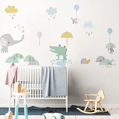 Children's Wall Stickers Baby Room Decoration Sticker Happy Animals in The Rain H90 x L60 cm