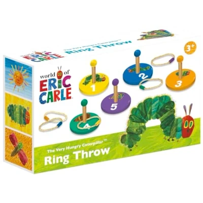 FUN FOR ALL THE FAMILY: Who will hit the target and be the winner with this fun ring toss set? This Very Hungry Caterpillar set is the perfect size all the family to use. BEAUTIFUL DESIGN: Children will adore the iconic Eric Carle character artwork that is on this charming outdoor wooden ring toss set. EASY TO LEARN AND PLAY: Ring toss is great fun and easy to play and will encourage children’s concentration and coordination. The set comes with five rope tossing rings and full instructions. MADE FROM WOOD: The quoits bases and pegs are crafted from hardwearing wood so you can enjoy the set for years to come. GREAT OUTDOOR FUN: This Very Hungry Caterpillar ring toss set is perfect for children’s parties and encourages outdoor fun and promotes hand and eye coordination., Manufacturer: Robert Frederick