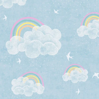 Children wallpaper wall Profhome 771441 non woven smooth with clouds matt blue white fuchsia yellow 5,33 m2