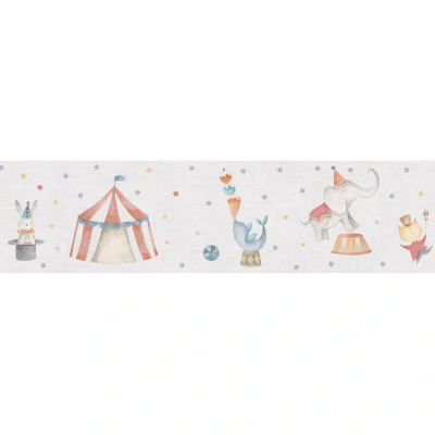 Children wallpaper wall Profhome 771491 border smooth with animal pattern matt grey red orange blue 5 m