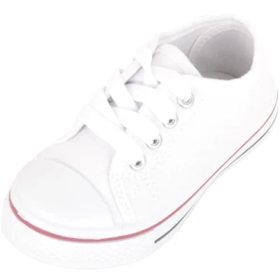 Childrens Kids Infants Easy Slip On Lace Up Canvas Sneaker Trainers Pumps White UK Infant 7 / EU 25