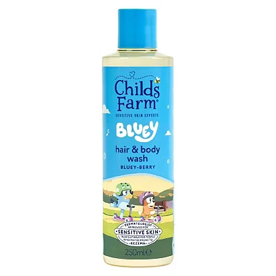 9 Advantage card points. Childs Farm Bluey Hair & Body Wash 250ml Gentle Tear-Free Formula for Kids, Babies & Sensitive Skin FREE Delivery on orders over 45 GBP.