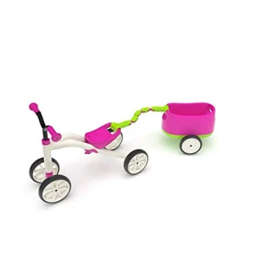 Chillafish Quadie+Trailie, stable 4 wheeler ride on with trailer, for kids 1 3 year, seat positions, grow me cookie storage in the and silent non marking wheels, pink