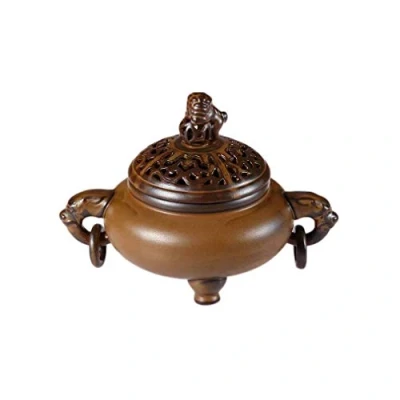 Material of the Chinese Lion Incenser: Ceramic Dimensions of the Chinese Lion Incense Burner: Base with handles approx. 19 cm width x 7, 5 cm height/ lid: diameter 9, 5 cm x 6, 5 cm high Color of the Chinese Lion Incenser: Brown Asian decoration - Zen atmosphere This traditional 3-foot censer features a Chinese lion, legendary animal of Chinese mythology on its lid
