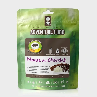 Ensure you don't get hungry on the hill with a lightweight Adventure Food Chocolate Mousse, lightweight dried food with a long shelf life. Just add cold water and whisk. Perfect for backpacking, this meal is quick and easy to make and won't take up much room in your pack.