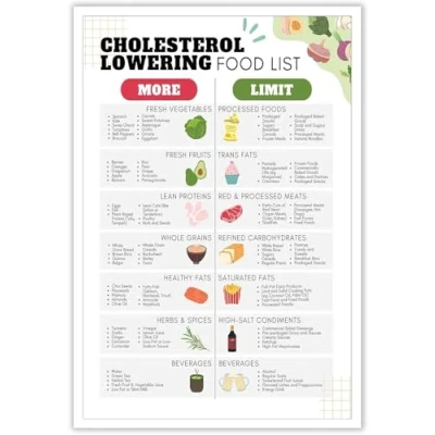 Cholesterol Lowering Food List Poster 2 Diabetes High Blood Pressure Heart Disease Healthy Chart Art Metal Tin Sign HDL And LDL Lipid Grocery Guide Wall Decor 6x8in
