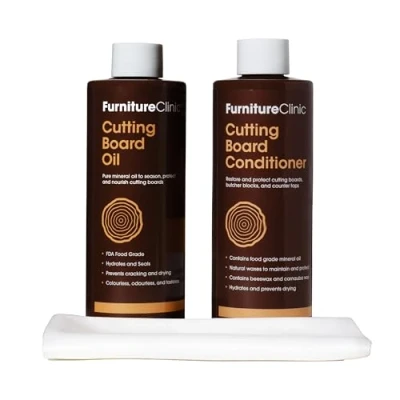 ALL IN ONE KIT: Everything you need to condition, oil and protect your wooden chopping boards. PROTECTS: Chopping Board Oil creates a protective barrier on the surface of the wood preventing liquid from penetrating the surface, working to reduce the proliferation of germs and bacteria while also prolonging the lifespan. RESTORES: The Cutting Board Conditioner’s pure mineral oils and natural waxes penetrate the wood, enhancing the wood's natural colour and character. The waxes will then seal in the oil and fill in cut marks to restore and create an even surface. HYDRATES: Regular application will prevent chopping boards from becoming dry, cracked, and brittle. ODOURLESS, COLOURLESS, TASTELESS: A premium, food grade oil, safe for use in all food contact areas. The oil will never spoil, unlike many alternative treatments. SATISFACTION GUARANTEED: Our experts are here if you have questions before purchasing and, if after purchasing, you’re not satisfied with the results (we expect you will be) we offer a money back guarantee.