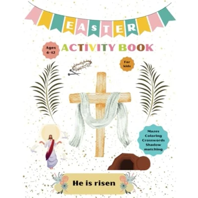 Christian Easter Activity Book for Kids Ages 6 12, He is Risen! Coloring Pages, Mazes, Crosswords & Bible Puzzles: Fun Faith Based Activities Sunday School, Homeschool Church