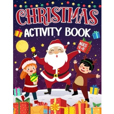 Christmas Activity Book Ages 4 8: A Fun Kids Theme Workbook with Learning Games, Coloring Pages, Cut and Paste, Mazes, Word Searches More!
