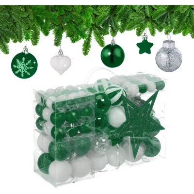 Christmas Baubles Set of 101, Glittering, Tree Decorations, Spheres & Spikes, Plastic, Traditional, Relaxdays