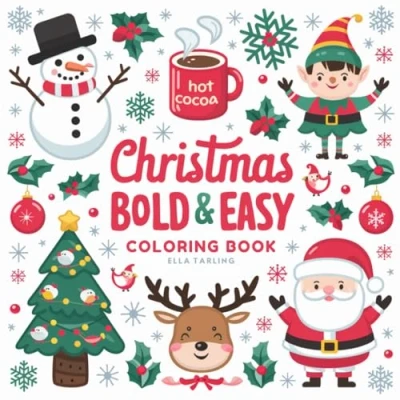Christmas Bold and Easy Coloring Book for Adults & Kids: 40 Cute Big Designs Relaxation: Featuring Santa Claus, Cozy Cabins, Simple Patterns, More (Christmas Stress Relief)